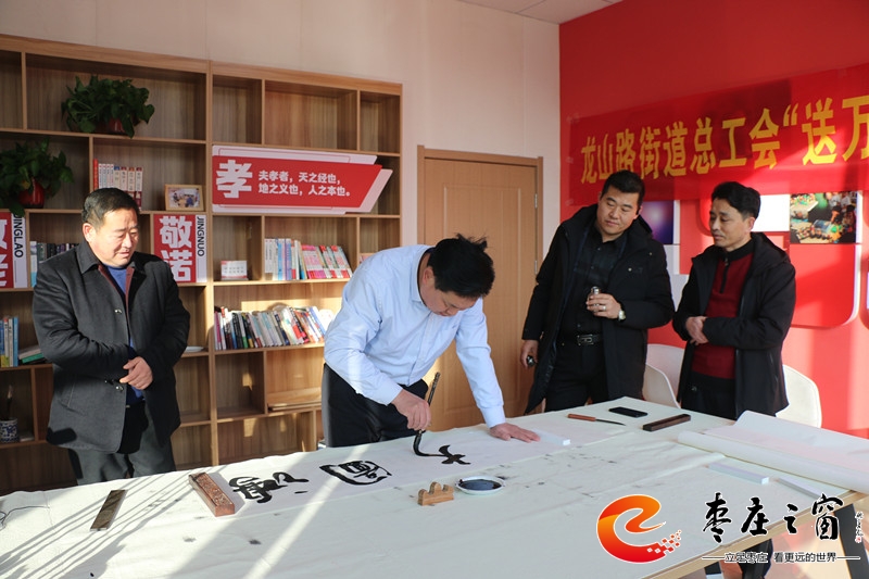 “給大家送‘!玻 卑殡S著新年的祝福,龍山路街道總工會的工作人員們正將書法家們寫好的一張張福字雙手遞給在場的職工。1月16日上午,市中區(qū)龍山路街道總工會在公勝街紅色驛站組織開展“送萬福 進(jìn)萬家”書法公益活動,邀請省書法家協(xié)會的4位書法家代表,在活動現(xiàn)場手寫福字和對聯(lián),為廣大職工群眾以及轄區(qū)企業(yè)送去新春的祝福和問候。